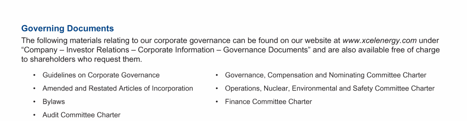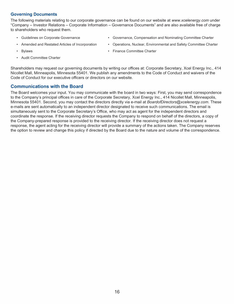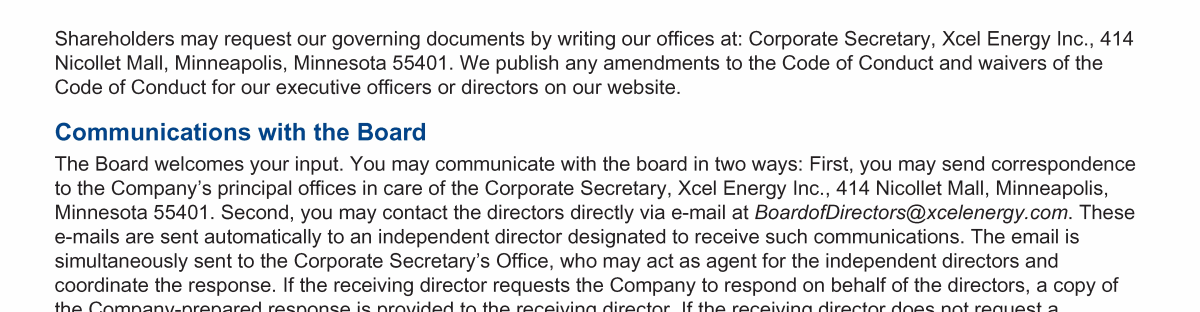 Click here to go to www.xcelenergy.com Click here to go to www.xcelenergy.com Click here to go to www.xcelenergy.com Click here to send a message to BoardofDirectors@xcelenergy.com Click here to send a message to BoardofDirectors@xcelenergy.com Click here to send a message to BoardofDirectors@xcelenergy.com Click here to go to www.xcelenergy.com Click here to send a message to BoardofDirectors@xcelenergy.com Click here to go to www.xcelenergy.com Click here to send a message to BoardofDirectors@xcelenergy.com