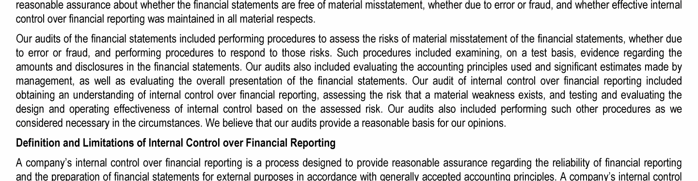 - Management Report on Internal Control Over Financial Reporting
