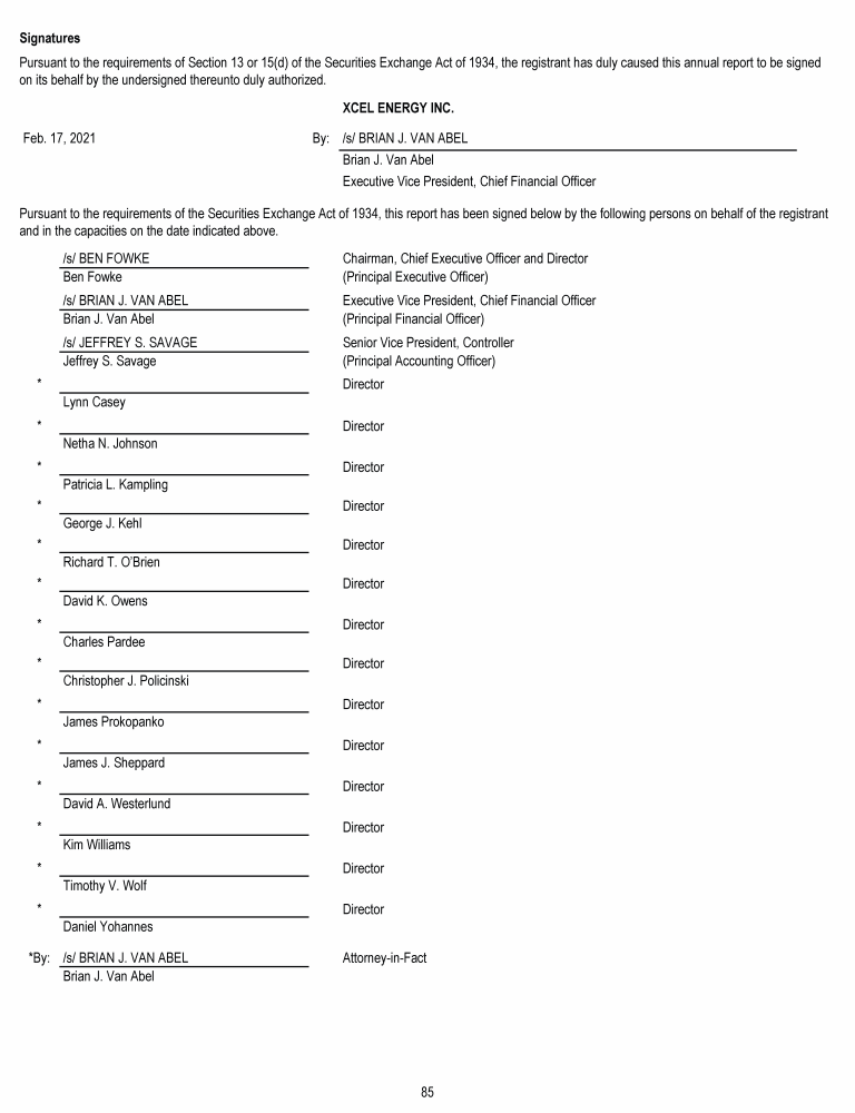 Xcel Energy Board of Directors