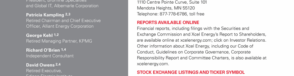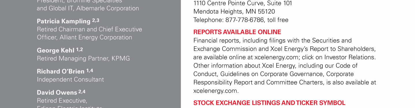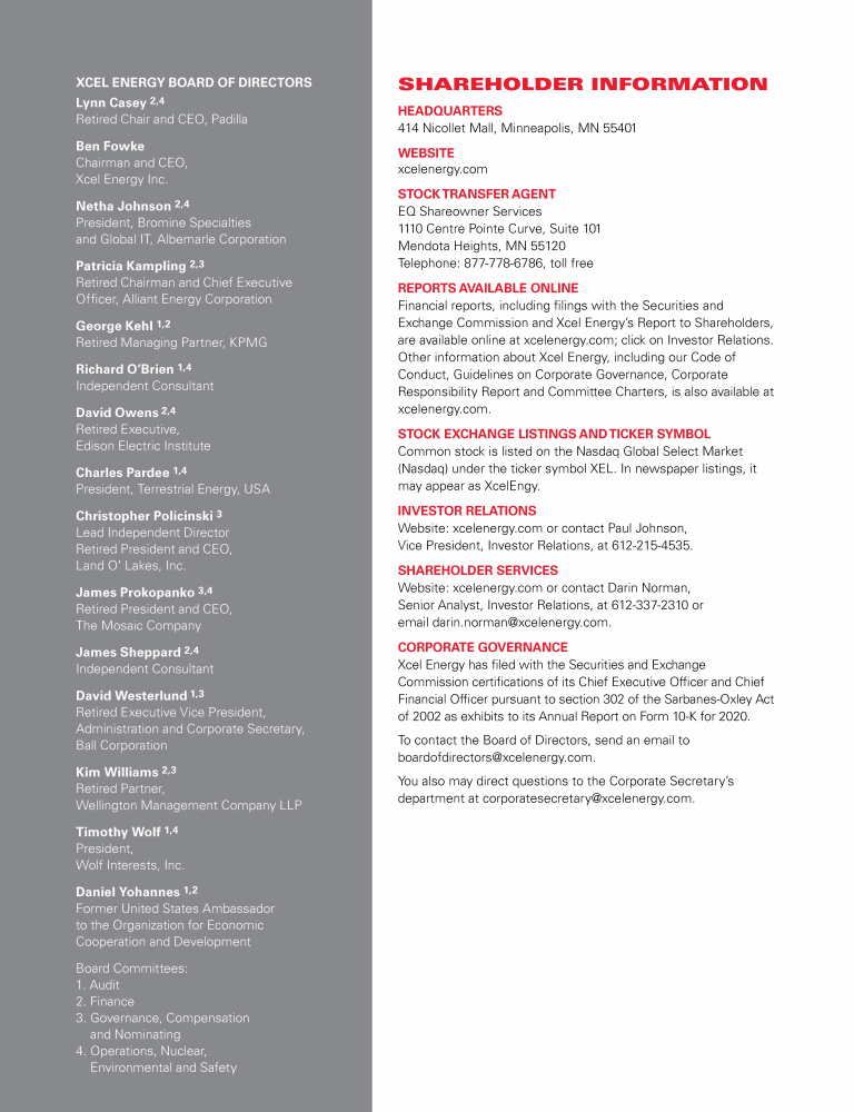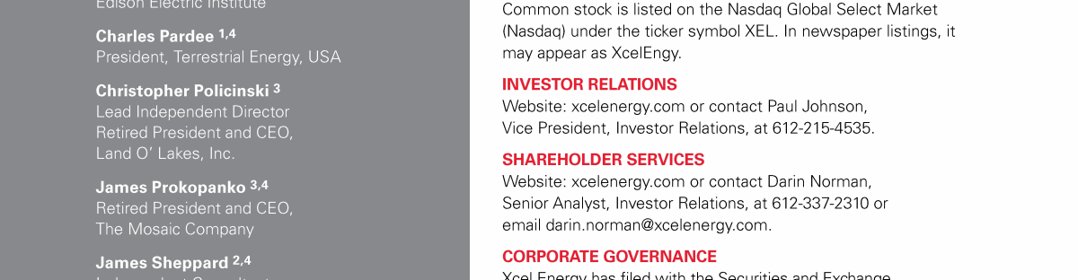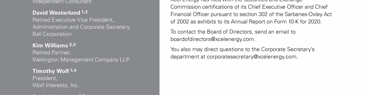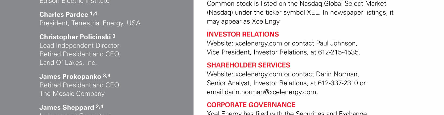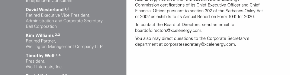 Xcel Energy Board of Directors