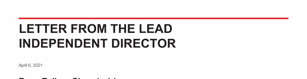 Letter from the Lead Independent Director