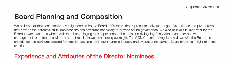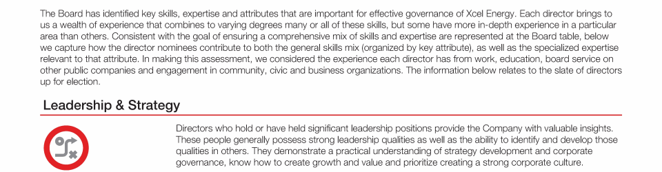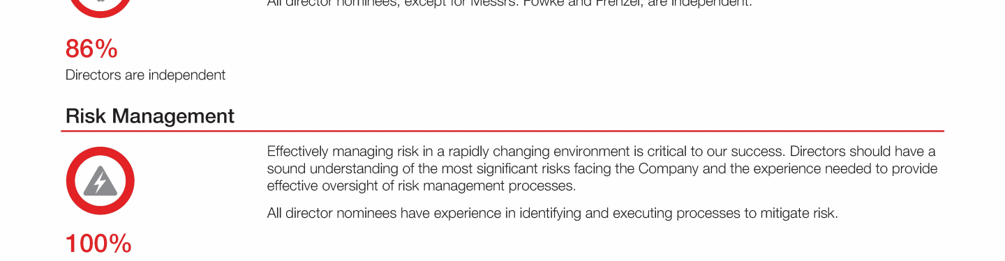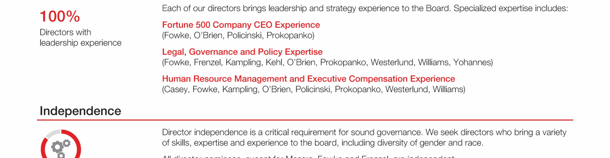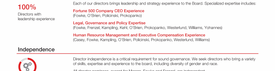Review our director nominees' biographies, skills/qualifications, committees, and more in our interactive MEET the BOARD format.