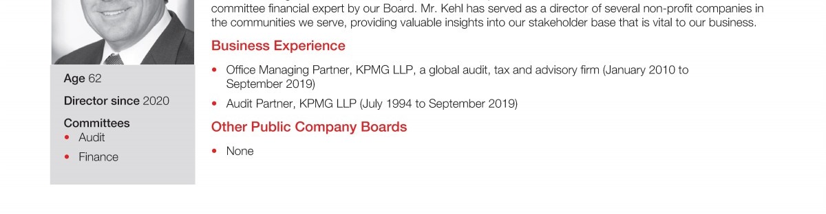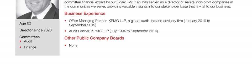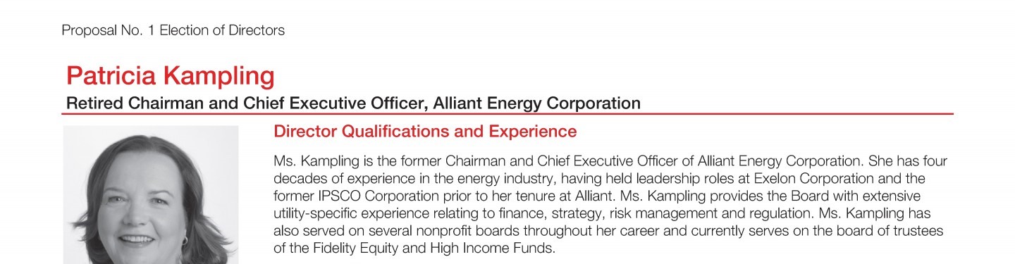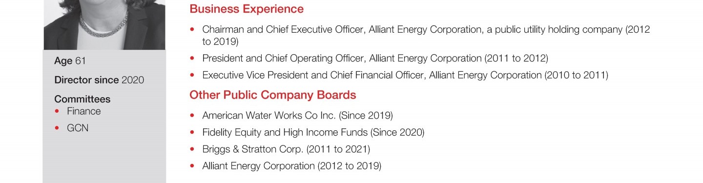 Review our director nominees' biographies, skills/qualifications, committees, and more in our interactive