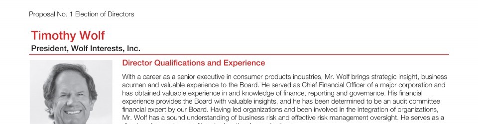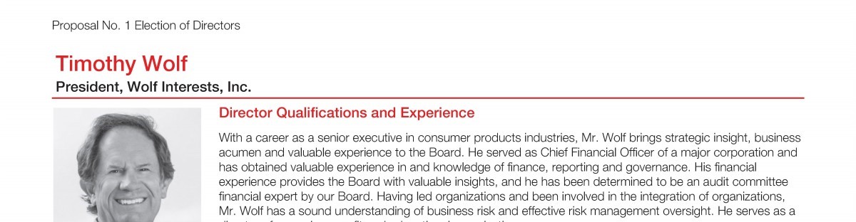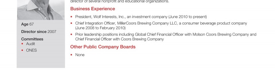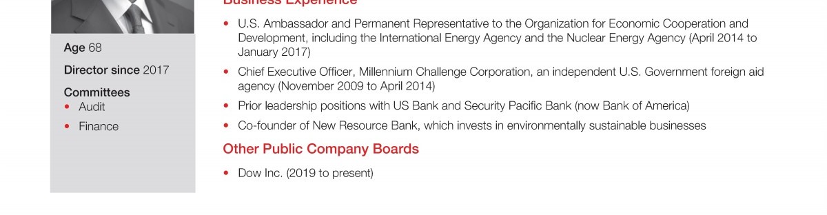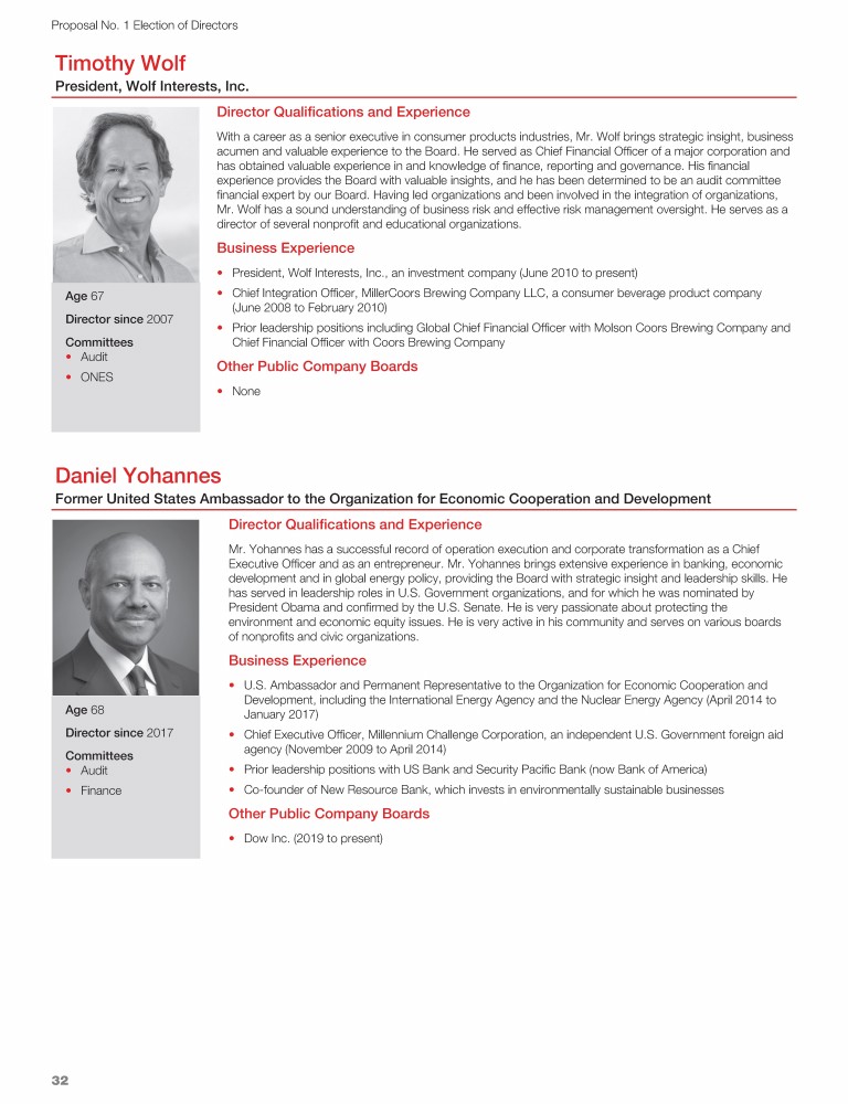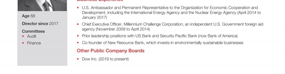 Review our director nominees' biographies, skills/qualifications, committees, and more in our interactive