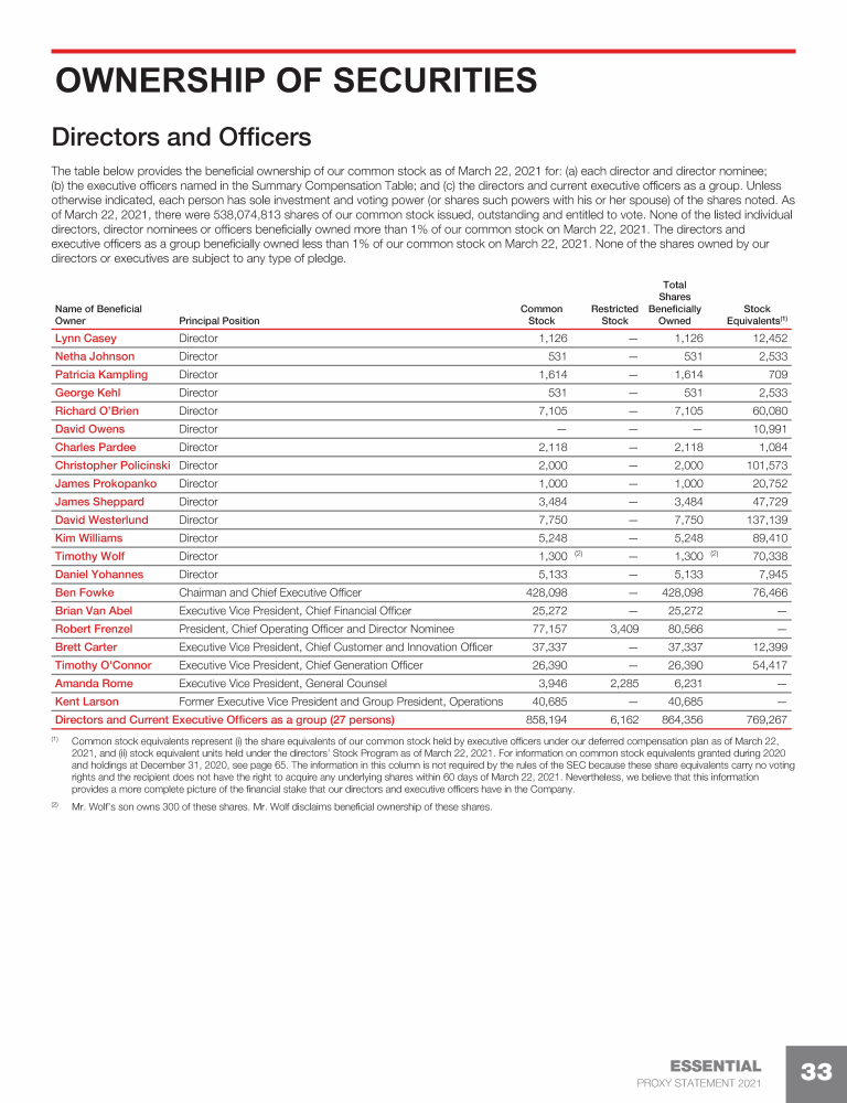 Ownership of Securities