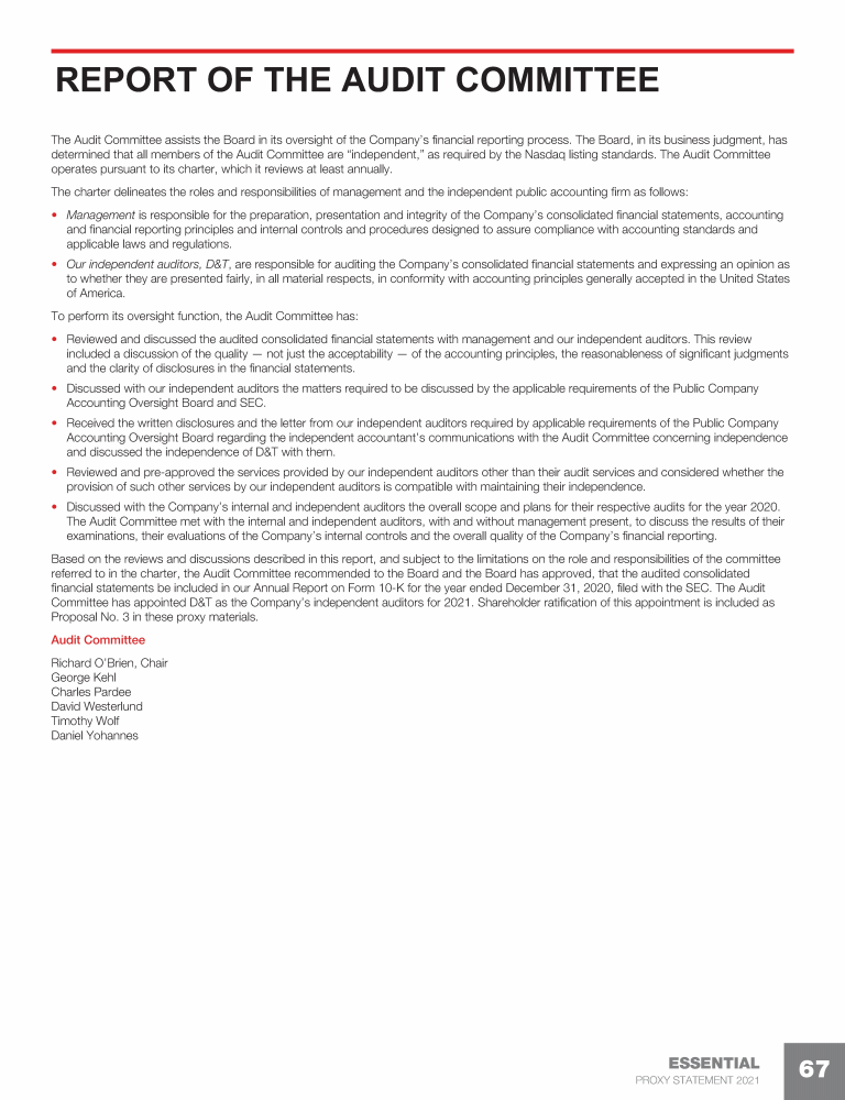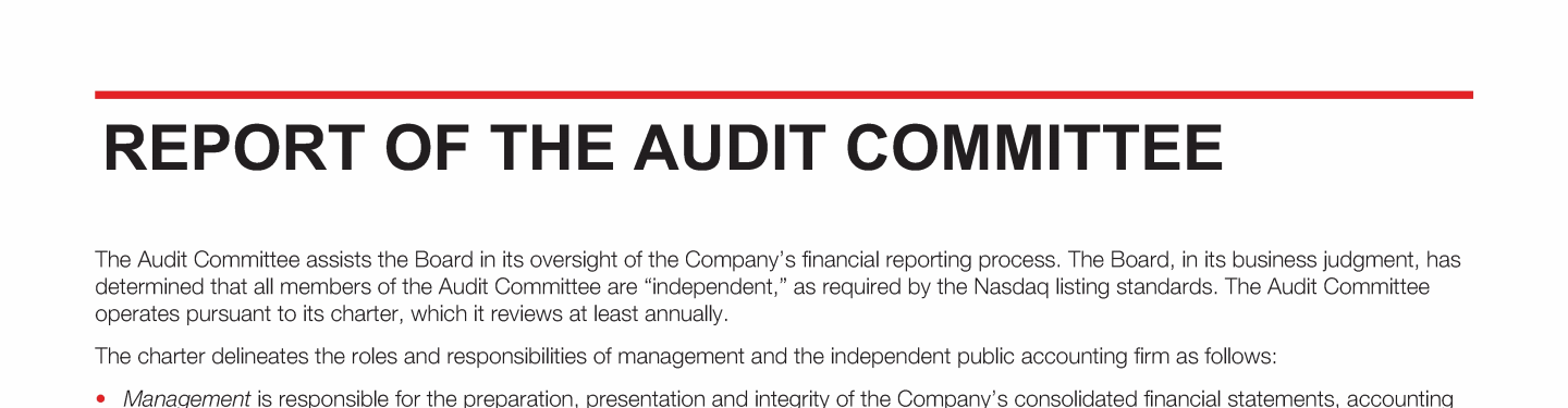 Report of the Audit Committee