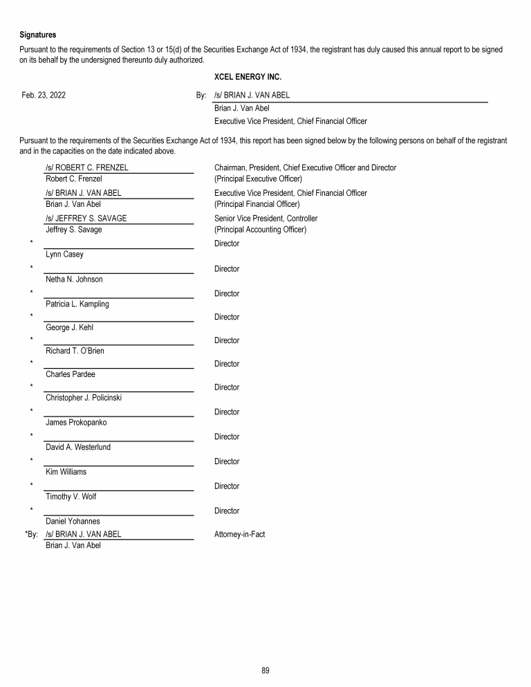 Xcel Energy Board of Directors