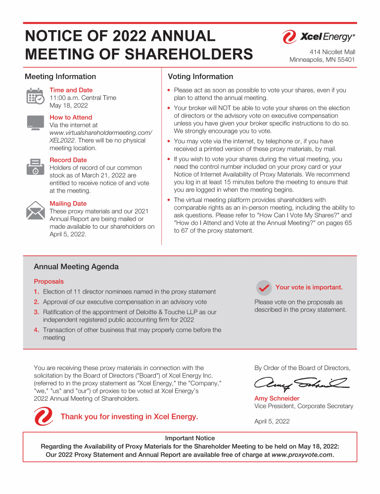 Notice of 2022 Annual Meeting of Shareholders