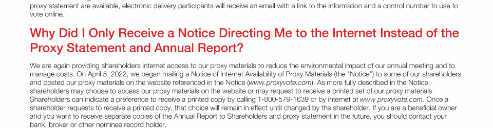 Notice of 2022 Annual Meeting of Shareholders