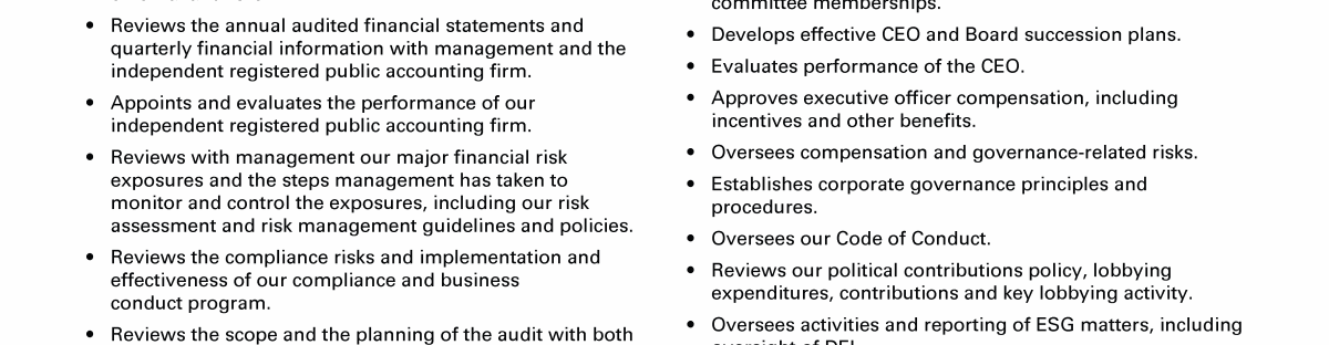 Review our director nominees' biographies, skills/qualifications, committees, and more in our interactive