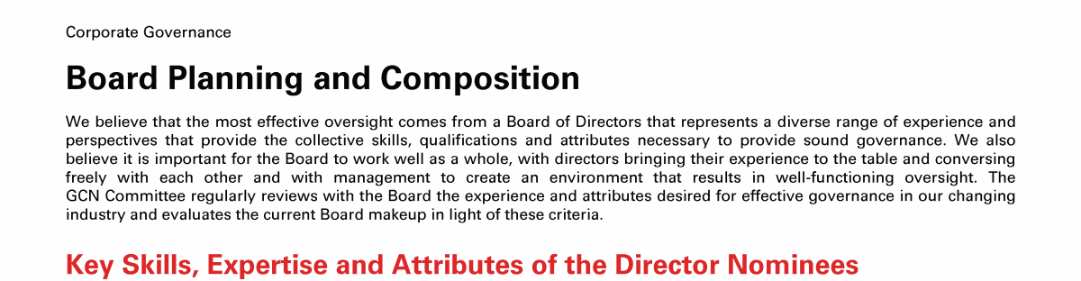 Review our director nominees' biographies, skills/qualifications, committees, and more in our interactive
