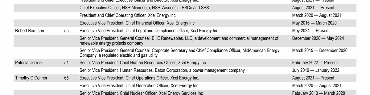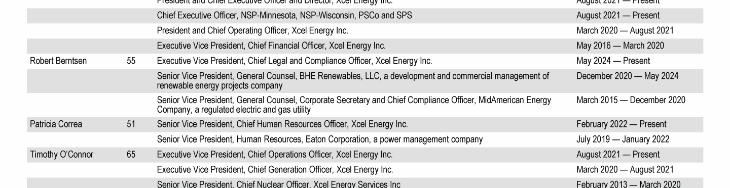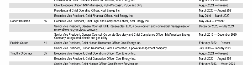 Xcel Energy Board of Directors